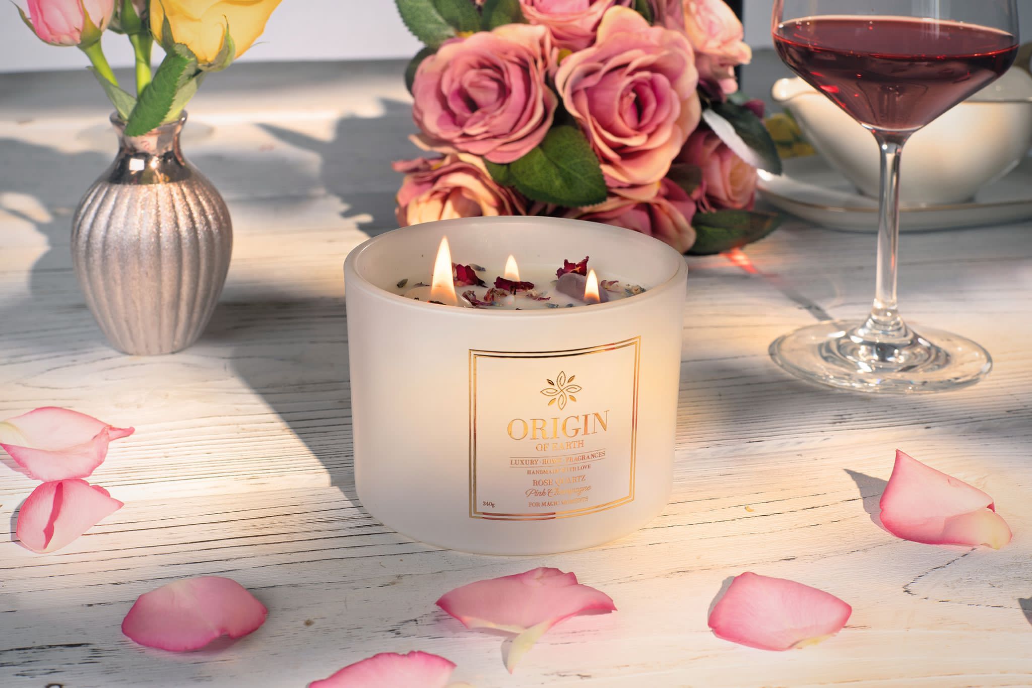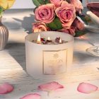 - Duftnote PINKCHAMPAGNE – Diese Kerze wurde aus floralen Düften wie Orange, Veilchenblatt, Himbeere, Preiselbeere, Pflaume und der Basisnote Rose hergestellt und kreiert so eine blumige Wohlfühlatmosphäre.