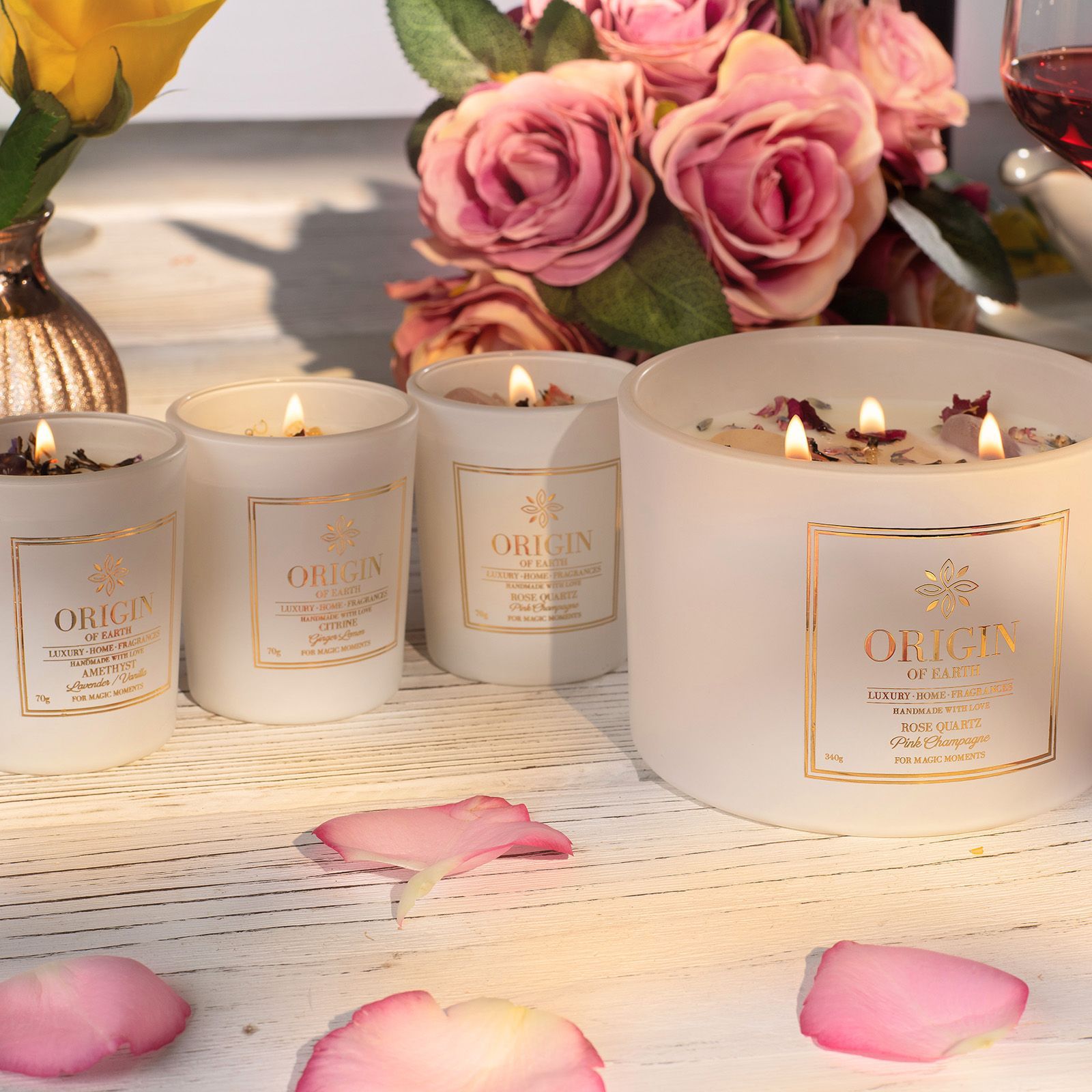 - Eingebetteten MINERALSTEINE von Rosenquarz, Amethyst und klarer Quarz stehen für Romantik, Klarheit, Geist und Herz.